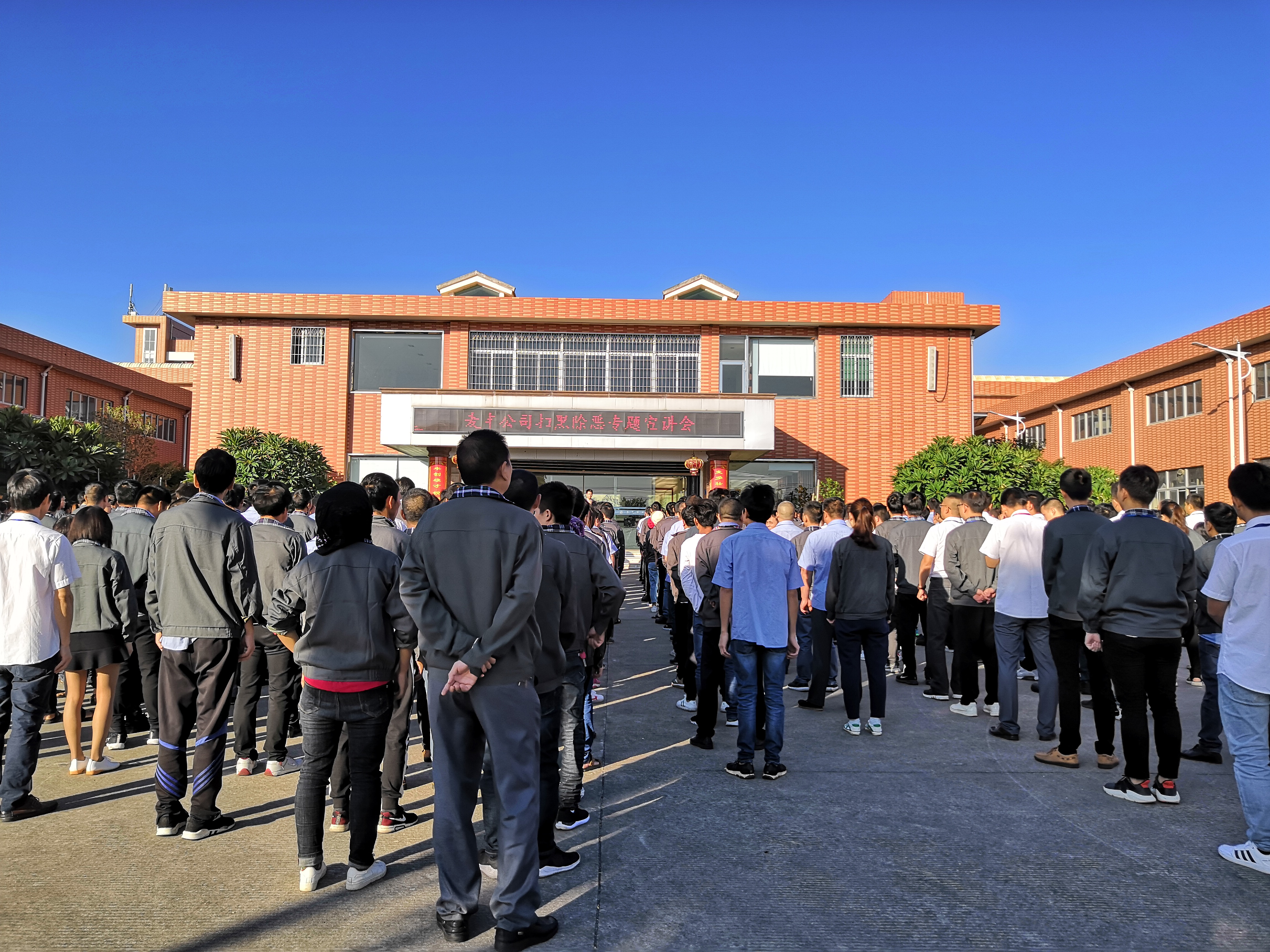 為進一步提高對掃黑除惡專項斗爭的知曉率和支持度,營造掃黑除惡濃厚氛圍,10月29日早上,在辦公樓前操場召開了掃黑除惡主題宣講會,會議由管理部經理溫欣鼎主持。麥豐全體員工共700余人參加。